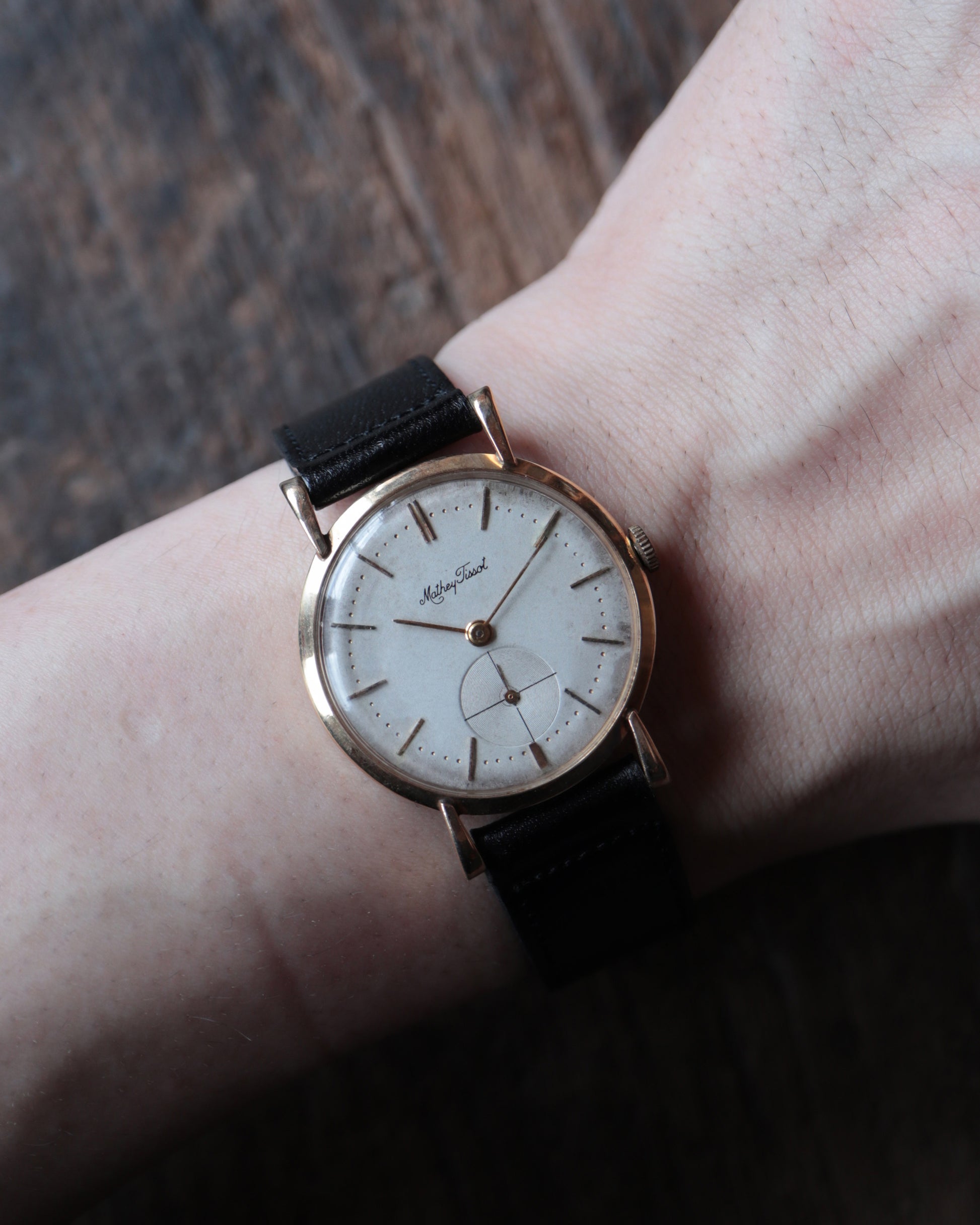 This is a Mathey-Tissot manual-winding watch made in the 1940s.